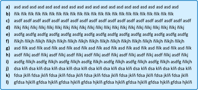 alt="Ejercicios de frases con la tercera fila para practicar mecanografía"