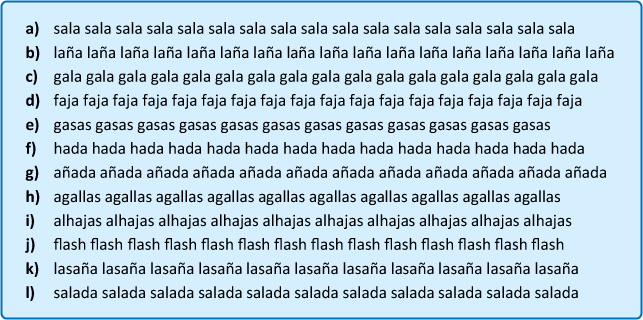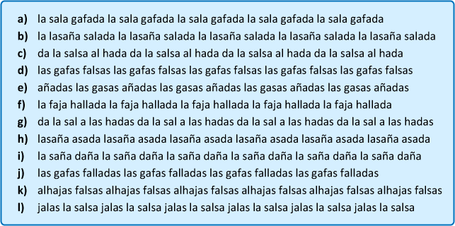 Repite tres veces cada uno de los textos siguientes: